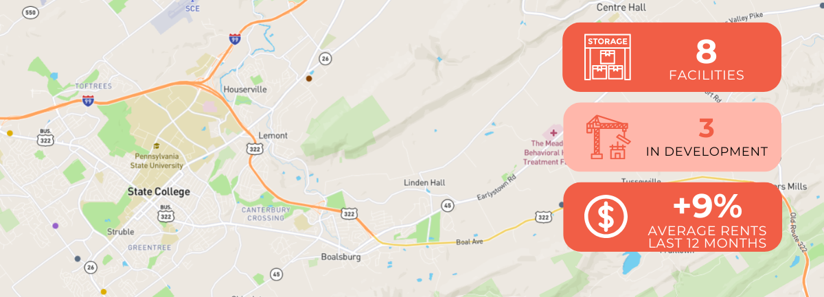 Want deeper insights on State College or other markets? Explore facility counts, rate trends, demographic shifts, new development activity and more with StorTrack’s Explorer platform.